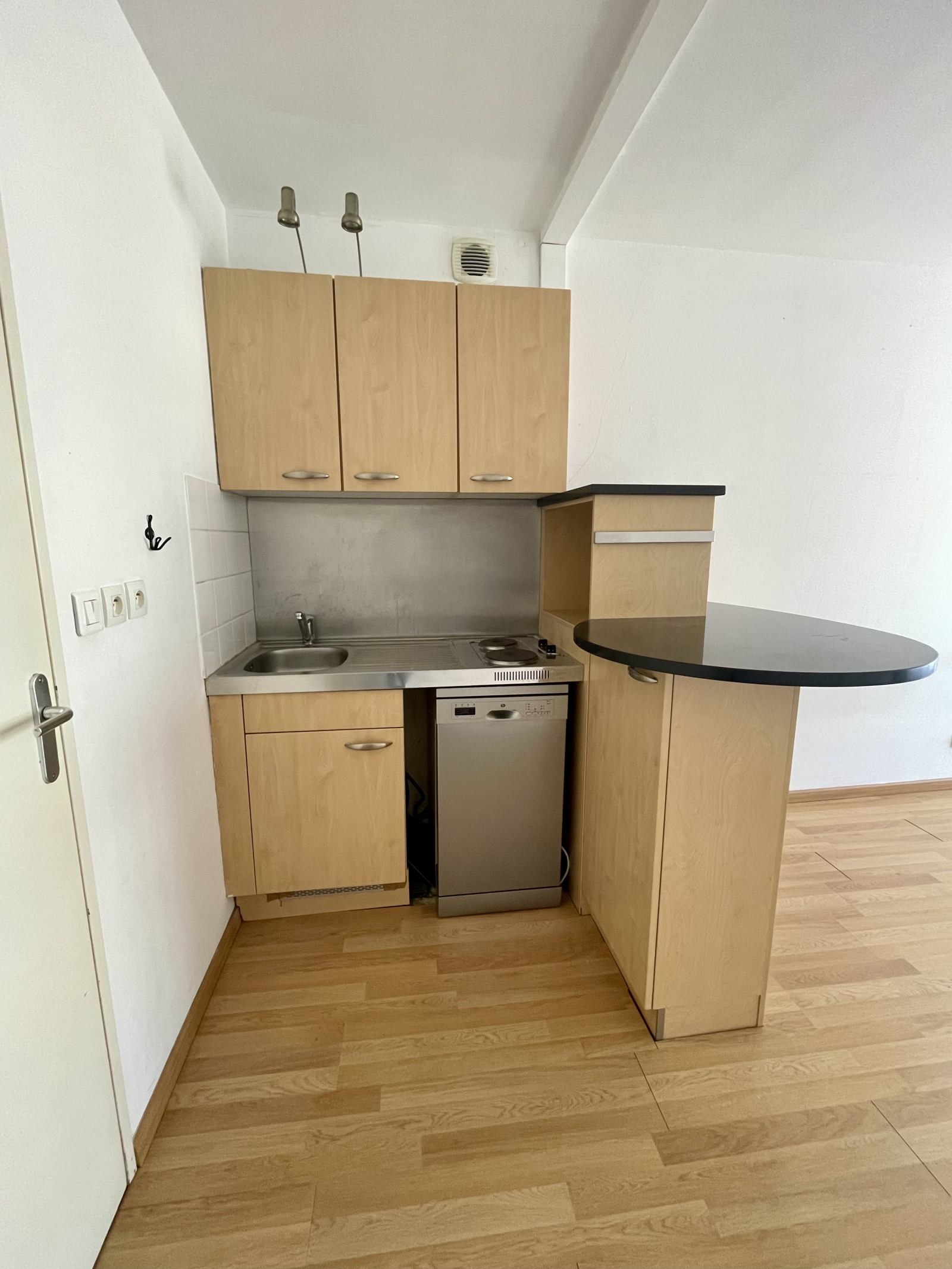 Il se compose d'un séjour , d'une cuisine, d'une salle de bains, d'une chambre et une place de parking.